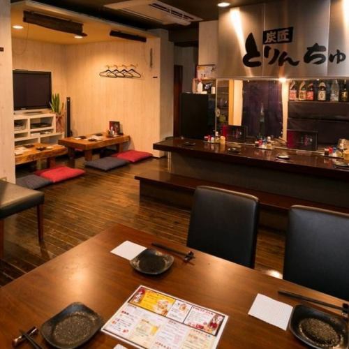 アットホームな雰囲気で藁焼きや串料理が楽しめるお店。お一人様やデートで使い勝手の良いカウンター席と、お集まりに最適なテーブル席をご用意しています!テーブル席は連結も可能なので、お気軽にご相談ください。